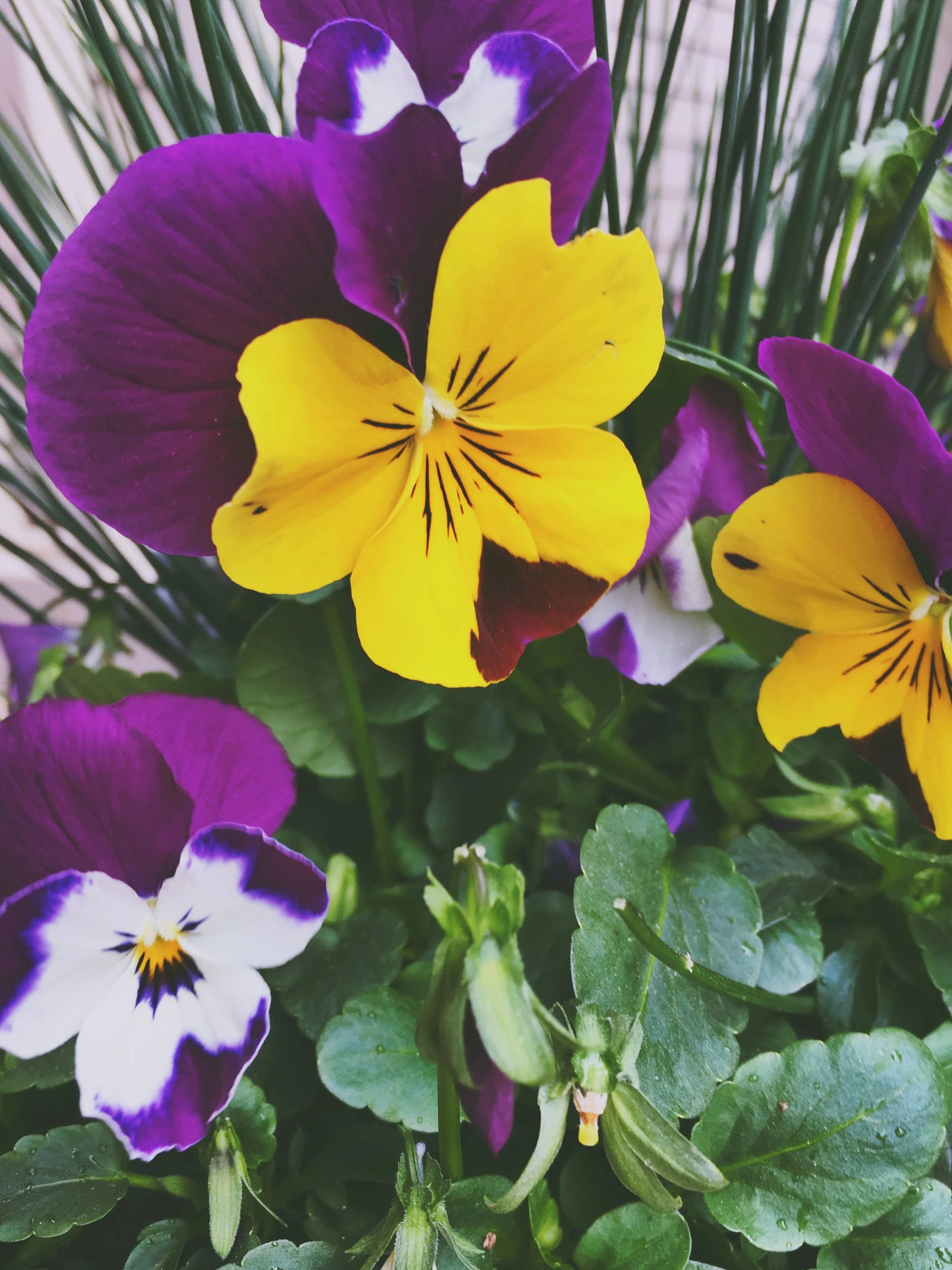 Pansies, unlike their name, are hardy to their core. They can withstand snow, and freezing temperatures down to 28 degrees F. They can even handle a dusting of snow. Other hardy plants for spring planters include, bulbs like tulips and daffodils, hyacinth and muscari. Calla Lillies can handle some cold though not as tolerant as pansies. If you have a covered porch like I do they should be okay. But keep in mind when planting spring pots that you may have to bring the plants in or cover them. (There have already been a few nights that have dipped below 28 so I have had to bring mine in two nights so far.) Below is a video of me planting my favorite planting box that Max made for me. I love wood of all kinds and how natural it looks. For the wood planter I used 2 packs of yellow pansies 2 packs of purple pansies, 2 juncus (those cute grasses) 1 deep purple calla lily, tulips, hyacinth, muscari (grape hyacinth), alyssum, pussy willow branches and grape vine twigs.