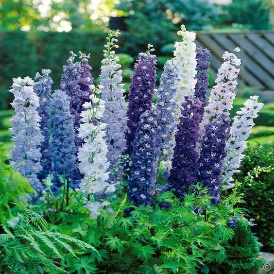 :any of numerous plants of the genus Delphinium, especially any of various tall, cultivated species having usually blue, pink, or white flowers